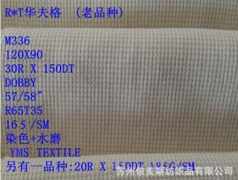 特性 R/T水磨布柔软,滑爽,挺括,主要用于服装面料,衬衫面料。产品具体规格等可以根据客人需要定制